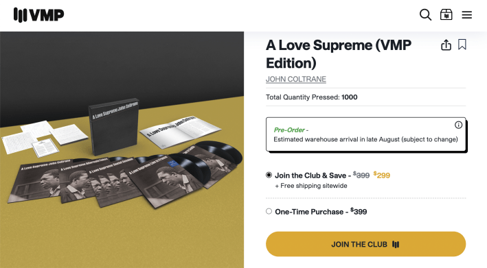 Then, in the spring of 2024, VMP hired Third Man to produce high-quality prints of a unique photograph of John Coltrane. The prints were apparently meant to go along with a lavish, 8-LP A Love Supreme box set priced at $399 ($299 for members). It was announced in early 2024 but — like many other projects in development — never saw release.